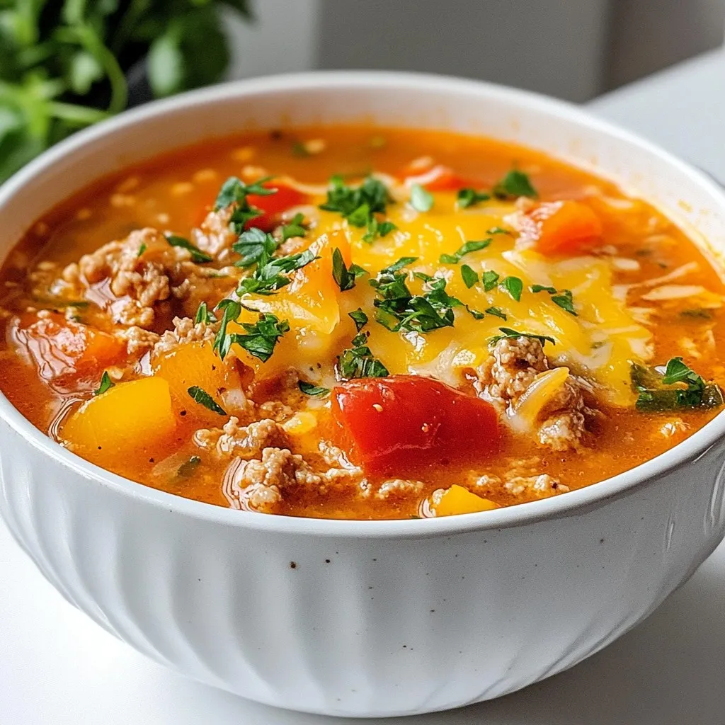 You can use either ground turkey or beef in this soup. Ground turkey is lean and great for a lighter meal. It brings a mild taste that lets other flavors shine. On the other hand, beef adds a rich, hearty flavor that many love. If you choose beef, make sure to drain extra fat after cooking. This little step keeps the soup from getting too greasy. Both options work well in this recipe, so pick what you like best.