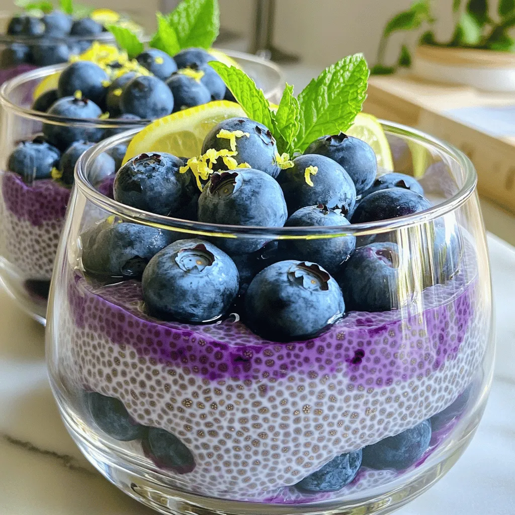 For a beautiful presentation, think about layering. Start with chia pudding, then add a layer of blueberries. Repeat this pattern to create a lovely display. You can serve it in small bowls or clear glass cups. This makes the layers visible and appealing. For a pop of color, add fresh mint leaves on top. They not only look nice but also add a fresh scent. Make your lemon blueberry chia pudding a feast for the eyes!