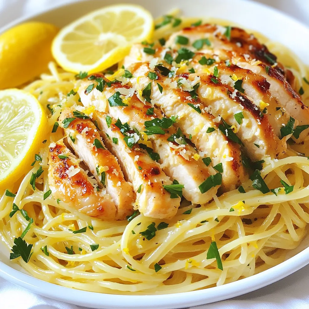 To serve, plate the coated pasta in bowls or on plates. Top each serving with the sliced chicken, sprinkling evenly with chopped fresh parsley. For an extra touch of flavor, consider adding freshly grated Parmesan cheese on top before serving.