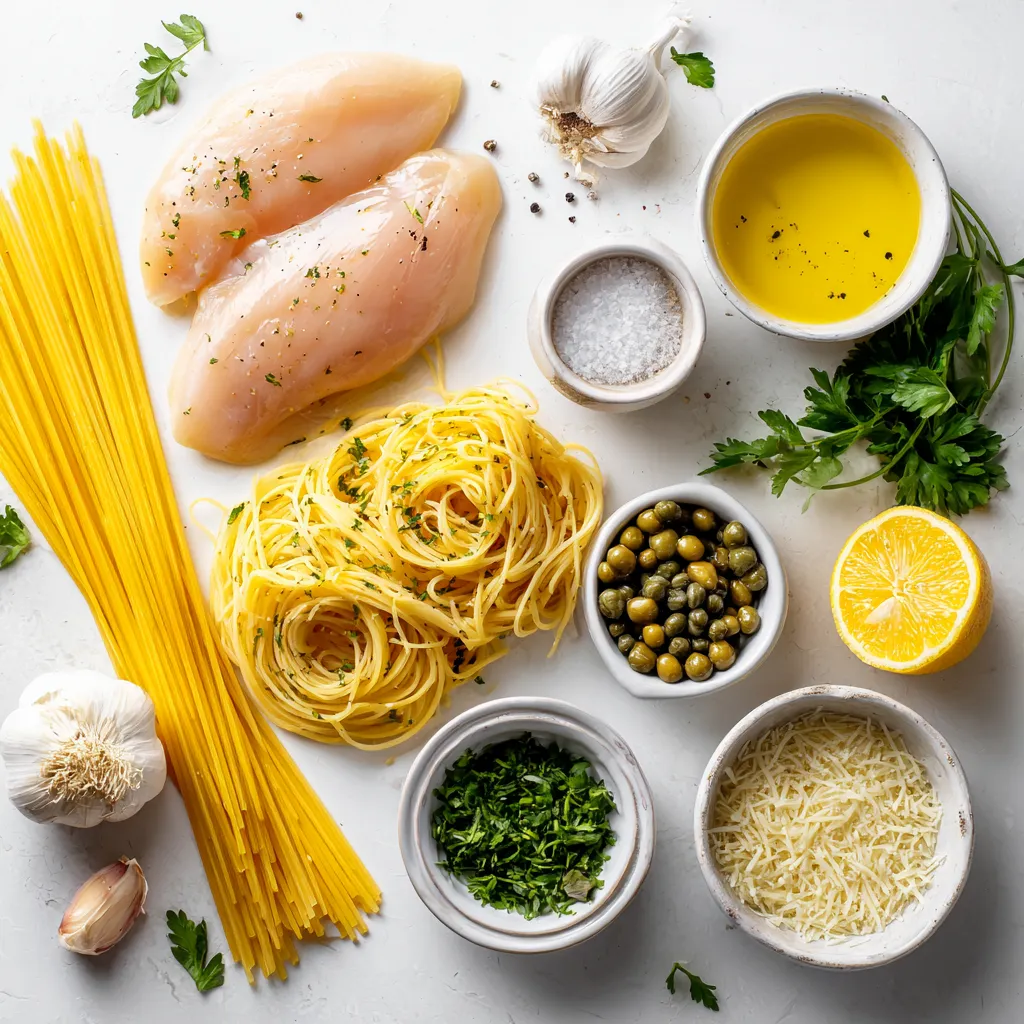 To make Lemon Caper Chicken Piccata Pasta, gather these key items: