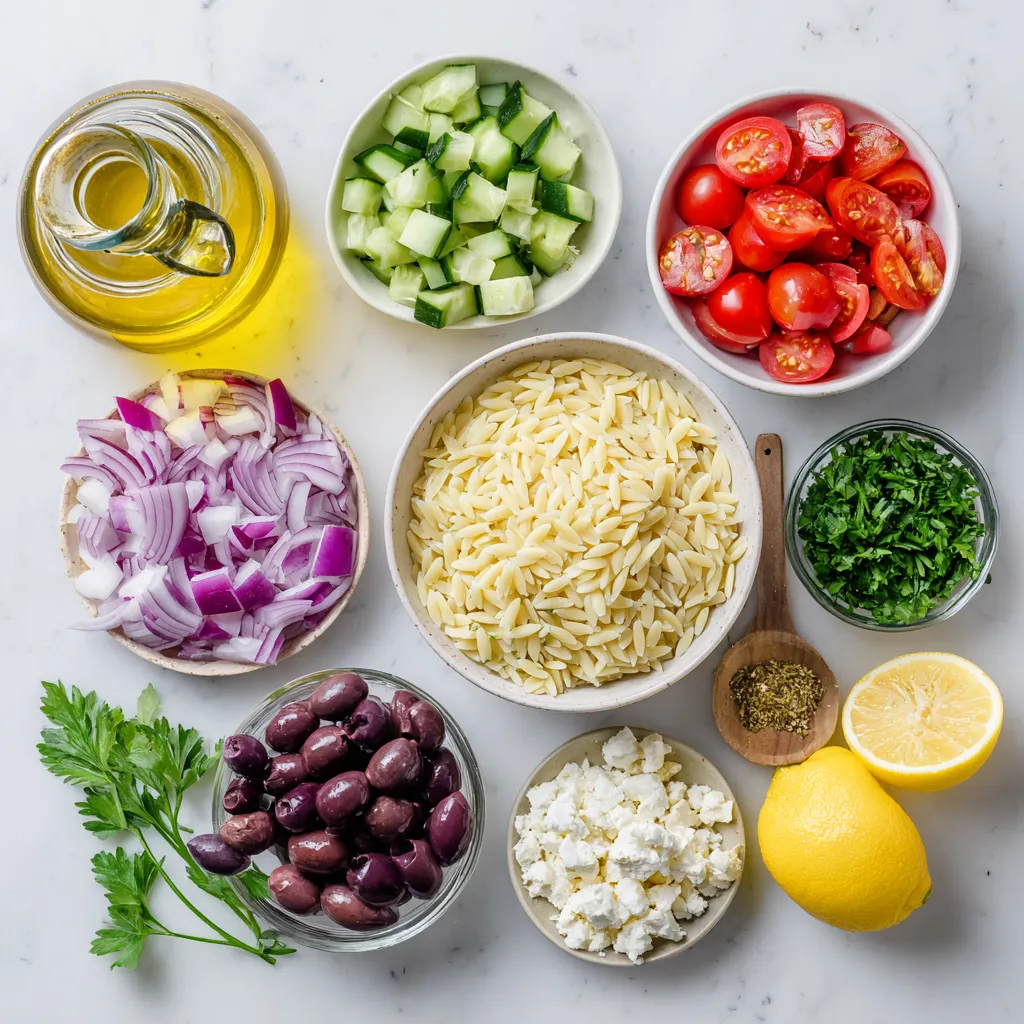 Complete list of ingredients for Lemon Feta Orzo Salad