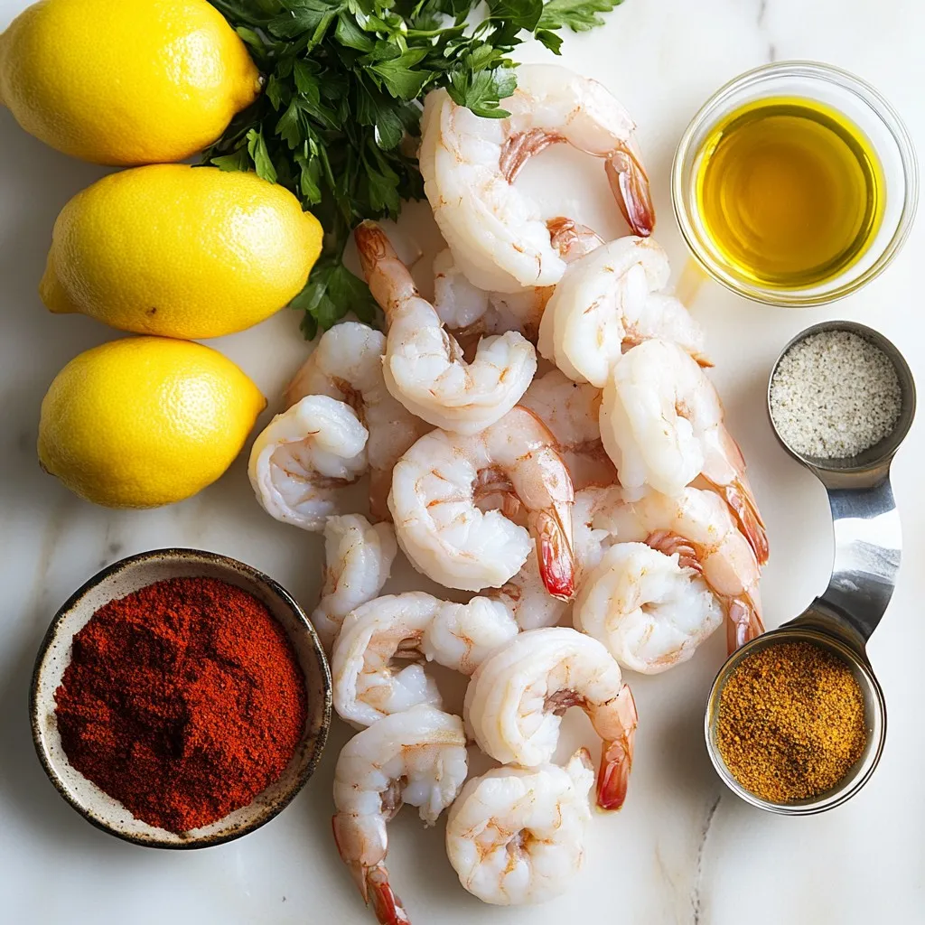 To make Lemon Garlic Air Fryer Shrimp, you need fresh and simple ingredients. Start with large shrimp. Make sure they are peeled and deveined for best results.