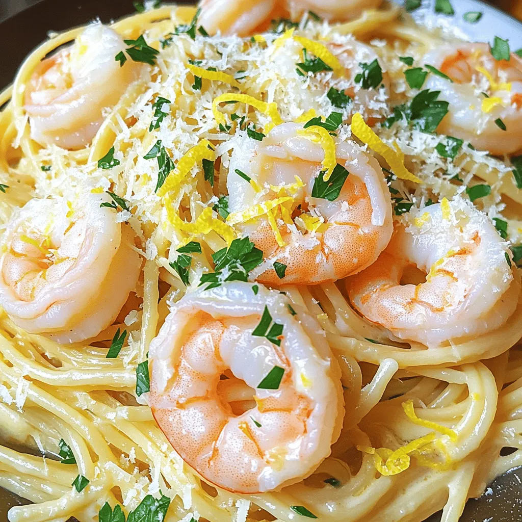 - 200g spaghetti or linguine - 250g large shrimp, peeled and deveined - 4 tablespoons unsalted butter - 4 cloves garlic, finely minced - Juice and zest of 1 large lemon - 1 teaspoon red pepper flakes (optional) - Salt and freshly cracked pepper to taste - 2 tablespoons fresh parsley, finely chopped - Grated Parmesan cheese, for serving Lemon garlic butter shrimp pasta is a quick and tasty meal. You need simple ingredients to make it. First, you’ll need your choice of spaghetti or linguine. This is the base of your dish. Next, shrimp adds protein and a nice flavor. Use large, peeled, and deveined shrimp for the best results. Butter is key here. It gives a rich taste to the sauce. Garlic adds a wonderful aroma. Use fresh garlic for the best flavor. The juice and zest of a lemon brighten the dish. It adds a fresh taste that balances the richness of the butter. For seasoning, red pepper flakes add a nice kick. You can skip them if you prefer no heat. Salt and pepper enhance all the flavors. Fresh parsley adds color and freshness. Lastly, a sprinkle of grated Parmesan cheese makes the dish creamy and delicious. Check out the Full Recipe to get started. Enjoy cooking this easy meal! - Bring salted water to a boil. - Cook spaghetti or linguine until al dente, about 8-10 minutes. - Reserve 1 cup of starchy pasta water and drain the pasta. - Melt butter in a large skillet over medium heat. - Add minced garlic and sauté for about 30 seconds. - Cook shrimp for 2-3 minutes on each side until pink and opaque. - Season with red pepper flakes, salt, and pepper to taste. - Mix the drained pasta with the cooked shrimp in the skillet. - Add fresh lemon juice and lemon zest to the mix. - Adjust the mixture's consistency with reserved pasta water. This simple process leads to a dish bursting with flavor. You can find the full recipe above. Enjoy cooking! To make Lemon Garlic Butter Shrimp Pasta shine, pay close attention to the garlic. Avoid burning garlic by monitoring heat. Keep it on medium to get that nice, fragrant flavor without bitterness. Use fresh lemon juice for better flavor. Bottled juice just can't match the bright taste of freshly squeezed lemon. Lastly, taste and adjust seasoning just before serving. This ensures your dish has the right balance of flavors. When it's time to serve, serve pasta in warm bowls. This keeps the dish hot and inviting. For a pop of color, add a sprinkle of parsley and lemon zest for presentation. It looks beautiful and adds a nice touch. You can also pair with a side salad or garlic bread. This makes for a complete and satisfying meal. For the full recipe, check out the details above. {{image_4}} You can boost this dish by adding vegetables. Spinach or cherry tomatoes work well. These veggies add color and nutrition. Spinach wilts nicely and gives a fresh taste. Cherry tomatoes burst with flavor when cooked. Using seasonal vegetables makes the dish even better. Fresh ingredients enhance the taste and make it healthier. You can swap shrimp for other proteins. Chicken or scallops are great options. If you use chicken, cut it into small pieces. Cook it longer, about 5-7 minutes, until it's fully cooked. For scallops, cook them for 2-3 minutes on each side. Adjust cooking times to ensure everything is cooked just right. This keeps the dish tasty and interesting. For the full recipe, check out the Lemon Garlic Butter Shrimp Pasta. To keep your lemon garlic butter shrimp pasta fresh, store it in the fridge. Use an airtight container to prevent moisture loss and keep flavors intact. Place a layer of plastic wrap over the pasta before sealing the container for extra protection. Aim to eat your leftovers within 2-3 days for the best taste. When storing, opt for glass or BPA-free plastic containers. Glass containers can handle heat well and are easy to clean. Plastic containers are lightweight and great for quick storage. Choose sizes that match your pasta portions to save space in the fridge. To reheat shrimp pasta, the best methods are stovetop or microwave. If using the stovetop, add a splash of water or broth to a pan. Heat over low heat, stirring gently until warm. This method helps keep the pasta from drying out. While reheating, always add some moisture. You can use reserved pasta water, broth, or a bit of olive oil. This adds flavor and helps revive the pasta’s texture. Stir well to ensure even heating and enjoy your dish just like it was fresh! Yes, you can make this dish ahead of time. I suggest cooking the pasta and shrimp separately. Store them in airtight containers. Keep the shrimp and pasta in the fridge for up to two days. When you are ready to eat, just reheat them together in a skillet. Add a splash of water or lemon juice to keep it moist. Deveining shrimp is easy. Here’s how to do it step by step: 1. Rinse the shrimp under cold water. 2. Use a sharp knife to make a shallow cut along the back. 3. Look for the dark vein. It runs along the back. 4. Use your fingers or a toothpick to pull it out. 5. Rinse the shrimp again after deveining. This keeps it clean. You can change the spice level by using red pepper flakes. Here are some tips: - For mild spice, omit the red pepper flakes. - For a little heat, add half a teaspoon. - For more heat, sprinkle a full teaspoon or more. You can also try adding hot sauce or diced jalapeños for extra flavor. This recipe features simple steps to make a tasty shrimp pasta dish. You learned about ingredient choices, cooking methods, and creative variations. Don’t forget to try the tips for perfecting the flavors. You can easily adapt this dish to your taste. Remember, cooking is about fun and learning. Enjoy your meal and impress your family or friends!