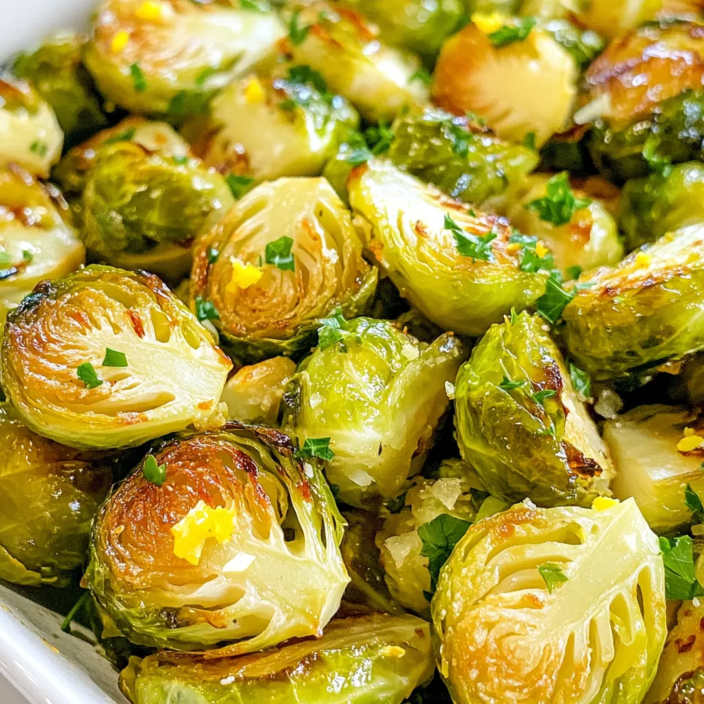A vibrant and flavorful side dish featuring roasted Brussels sprouts with lemon and garlic.