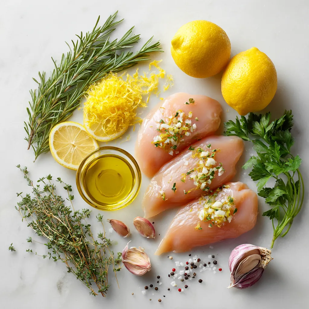 To make Lemon Herb Grilled Chicken, gather these ingredients. You need four boneless, skinless chicken breasts. They are easy to grill and stay juicy. You will also need three tablespoons of olive oil and the zest from two bright lemons. This zest adds a fresh kick.