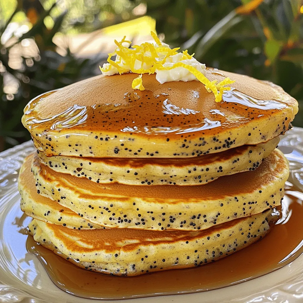 To make lemon poppy seed pancakes, gather these items: - 1 cup all-purpose flour - 1 tablespoon poppy seeds - 1 tablespoon baking powder - 1/4 teaspoon salt - 1 tablespoon granulated sugar - 1 cup milk, at room temperature - 1 large egg, lightly beaten - 2 tablespoons unsalted butter, melted and slightly cooled - Zest of 1 lemon, finely grated - 2 tablespoons freshly squeezed lemon juice - Pure maple syrup, for drizzling If you want to change the number of servings, here’s a quick guide: - For 2 servings, use 1/2 cup flour, 1/2 cup milk, and 1 egg. - For 6 servings, use 1 1/2 cups flour, 1 1/2 cups milk, and 2 eggs. Adjust the other ingredients accordingly. You can modify this recipe for different diets: - For gluten-free, swap all-purpose flour with a gluten-free blend. - For dairy-free, use almond milk or oat milk instead of regular milk. - For vegan pancakes, replace the egg with 1/4 cup of applesauce. Try these options to suit your needs! To start, gather all your ingredients. This makes cooking easier. In a medium bowl, sift 1 cup of all-purpose flour, 1 tablespoon of poppy seeds, 1 tablespoon of baking powder, 1/4 teaspoon of salt, and 1 tablespoon of sugar. Whisk these dry ingredients well. This helps mix them evenly. Next, in another bowl, combine 1 cup of room temperature milk, 1 large lightly beaten egg, 2 tablespoons of melted butter, the zest of 1 lemon, and 2 tablespoons of lemon juice. Whisk this mixture until it’s smooth. Now, pour the wet mix into the dry mix. Stir gently with a spatula until just combined. It’s okay to have small lumps; they help keep your pancakes fluffy. Preheat a non-stick skillet over medium heat. Lightly grease the surface with cooking spray or a bit of butter. This keeps pancakes from sticking. Pour 1/4 cup of batter onto the skillet for each pancake. Cook until bubbles form on top, which takes about 2-3 minutes. Flip the pancake with a spatula and cook for another 2 minutes, or until it turns golden brown. Once cooked, place your pancakes on a warm plate. You can keep them in a low oven to stay warm while you finish cooking the rest. For fluffy pancakes, do not overmix the batter. Small lumps are fine and help with texture. Use room temperature milk and eggs; this helps the batter mix better. Make sure your skillet is hot before adding the batter. This gives the pancakes a nice rise. Lastly, serve your pancakes warm and drizzle with pure maple syrup. A sprinkle of extra lemon zest on top adds flavor and a beautiful touch. Enjoy each fluffy bite! When making lemon poppy seed pancakes, avoid overmixing the batter. Lumps are fine. If the batter is too smooth, your pancakes may turn out dense. Another mistake is cooking on too high heat. Medium heat works best for even cooking. Lastly, don’t skip letting your pan heat up. A hot pan ensures a nice golden crust. Use a non-stick skillet or griddle for the best results. A flat spatula helps flip the pancakes easily. A whisk works great for mixing your wet and dry ingredients. If you have a ladle, it helps pour the batter evenly. Keep a warm plate ready to hold your cooked pancakes until serving. Serve pancakes warm and stack them high for a great look. Drizzle pure maple syrup generously over the top. For a pop of color, add a sprinkle of lemon zest. Fresh berries can also brighten up the plate. You can even serve them with a dollop of whipped cream for extra flair. {{image_4}} You can make your lemon poppy seed pancakes even better. Try adding blueberries or raspberries to the batter. Just fold them in gently. You can also mix in chocolate chips for a sweet twist. The chocolate pairs well with the lemon flavor! For gluten-free pancakes, use a gluten-free flour blend. Look for one that has a mix of flours. This will help keep the pancakes fluffy. To make these pancakes vegan, swap the egg for a flax egg. Mix one tablespoon of flaxseed meal with three tablespoons of water. Let it sit for five minutes until it thickens. Change your pancakes with the seasons! In spring, add fresh strawberries or a hint of mint. For summer, try a splash of coconut milk in the batter. In autumn, mix in pumpkin puree and some warm spices like cinnamon. During winter, use a bit of peppermint extract for a festive flavor. Each season brings a new taste to enjoy! After enjoying your lemon poppy seed pancakes, you might have some left. To store them, let the pancakes cool first. Then, stack them with a piece of parchment paper in between each pancake. Place the stack in an airtight container. This helps keep them fresh. You can store them in the fridge for up to three days. Be sure to seal the container well. When you're ready to eat your leftover pancakes, reheating is key. You can use a microwave for a quick option. Place a pancake on a microwave-safe plate. Heat it for about 20-30 seconds. If you want a crispier texture, use a skillet. Heat the skillet over medium heat. Place the pancake in the skillet for about one minute on each side. This method brings back the fluffy texture. Freezing pancakes is a great way to save time. To freeze them, make sure they are completely cool. Stack them with parchment paper in between. Then, place the stack in a freezer-safe bag. Remove as much air as possible before sealing. You can freeze pancakes for up to two months. When you're ready, just reheat them straight from the freezer! If you don't have poppy seeds, you can use chia seeds or sesame seeds. Both options add crunch. You can also skip the seeds for a smooth pancake. The flavor will still shine through. Yes, you can make the batter ahead. Just mix the wet and dry ingredients separately. Keep them in the fridge for up to a day. When ready to cook, mix them together. This will save you time in the morning! You can tell pancakes are done when they are golden brown. Look for bubbles forming on top before you flip them. Cook them for about 2-3 minutes on each side. If they spring back when you touch them, they are ready to eat! This