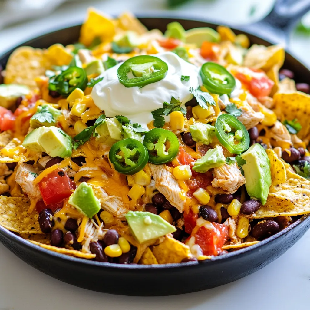 Keyword chicken, easy, loaded, nachos, skillet