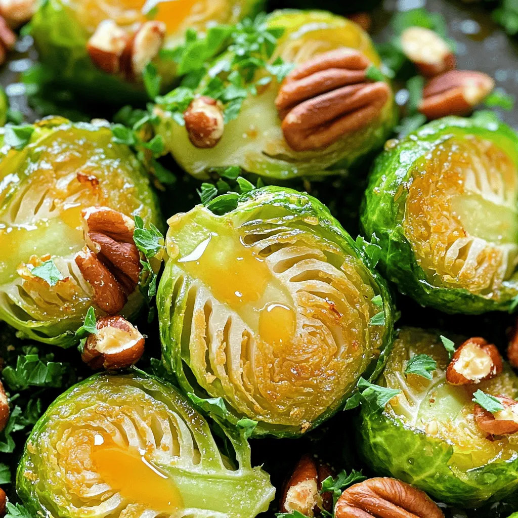 Preheat your oven to 400°F (200°C). Spread the Brussels sprouts on a lined baking sheet. Make sure they sit in a single layer. Roast them for about 20 to 25 minutes. Stir them halfway through for even cooking. If you want some crunch, add pecans in the last five minutes. When they’re done, they should be tender and crispy. Let them cool for a few minutes. Before serving, sprinkle fresh parsley on top for color and flavor. Enjoy your flavorful delight!