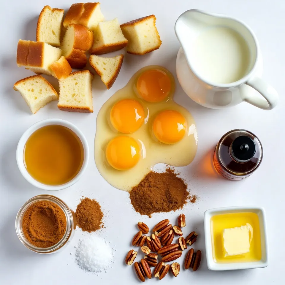 These main ingredients form the heart of your casserole. The bread gives it a soft texture. Eggs and milk bind everything together, making it creamy. Maple syrup adds sweetness, and vanilla extract enhances the flavor.