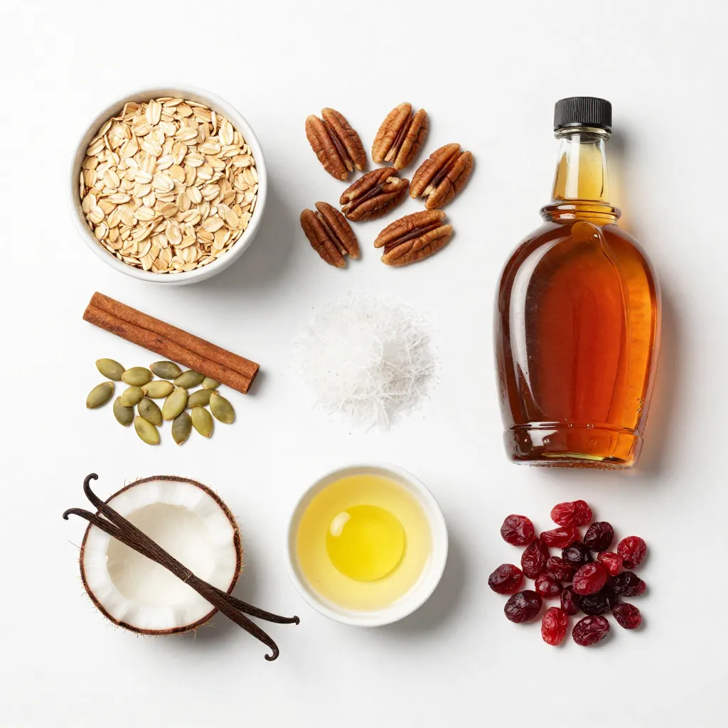 - 2 cups rolled oats - 1 cup pecans, roughly chopped - 1/2 cup pumpkin seeds - 1/2 cup unsweetened shredded coconut - 1/2 teaspoon sea salt - 1/2 teaspoon ground cinnamon - 1/2 cup pure maple syrup - 1/4 cup coconut oil, melted - 1 teaspoon vanilla extract - 1/2 cup dried cranberries or raisins (optional) One serving of Maple Pecan Granola Clusters contains around 200 calories. This includes about 10 grams of fat, 25 grams of carbohydrates, and 4 grams of protein. The clusters also have fiber, which helps with digestion. - Pecans: These nuts are rich in healthy fats and protein. They help lower bad cholesterol and improve heart health. - Pumpkin Seeds: These seeds pack a punch with minerals like magnesium and zinc. They support bone health and boost your immune system. - Rolled Oats: Oats are a great source of fiber. They keep you full longer and help with heart health. - Maple Syrup: This natural sweetener has antioxidants. It can help reduce inflammation and provide energy. - Coconut Oil: This oil is known for its healthy fats. It can boost your metabolism and provide quick energy. Using these ingredients not only makes tasty granola but also gives you healthy benefits. Enjoy your Maple Pecan Granola Clusters as a snack or a breakfast topper! {{ingredient_image_2}} First, I set my oven to 325°F (163°C). I line a baking sheet with parchment paper. This helps the granola not stick. Now, in a large bowl, I mix the dry ingredients. I add 2 cups of rolled oats, 1 cup of roughly chopped pecans, and 1/2 cup of pumpkin seeds. Then, I toss in 1/2 cup of unsweetened shredded coconut, 1/2 teaspoon of sea salt, and 1/2 teaspoon of ground cinnamon. I stir everything well. Next, I prepare the wet ingredients in another bowl. I whisk together 1/2 cup of pure maple syrup, 1/4 cup of melted coconut oil, and 1 teaspoon of vanilla extract. It should look smooth and blended. I pour this wet mixture over my dry ingredients. I stir carefully, making sure everything is coated. If I want, I can add 1/2 cup of dried cranberries or raisins at this point. Now, I spread the granola mixture evenly on the lined baking sheet. I press it down with a spatula or my hands. This step helps form nice clusters. I place the baking sheet in the oven and bake for 20-25 minutes. Halfway through, I stir the granola to help it cook evenly. I keep an eye on it, looking for a golden brown color. After baking, I take the granola out and let it cool completely on the baking sheet. It will harden as it cools, making those tasty clusters. Once cool, I break the granola into clusters of my preferred size. I store the clusters in an airtight container. They can last for up to two weeks, but they usually go fast! To get the best crunch in your Maple Pecan Granola Clusters, follow these tips. First, spread the mixture evenly on the baking sheet. A thin layer helps it bake evenly. Press the mixture down firmly; this helps it stick together. Bake at 325°F (163°C) for 20 to 25 minutes. Stir halfway through to promote even baking. Keep an eye on it. You want a golden brown color for that perfect crunch. To avoid sticking, line your baking sheet with parchment paper. This makes cleanup easy and helps your granola slide off smoothly. Use a spatula to gently break up any areas that seem stuck. For burning, check the granola often, especially towards the end of baking. If the edges look too dark, remove it from the oven right away. Cooling on the sheet helps prevent burning as well. Fresh ingredients make a big difference in flavor. Use fresh oats, nuts, and seeds for the best taste. If you use dried fruits like cranberries or raisins, add them after baking. This keeps them chewy and flavorful. Always check the expiration dates on your ingredients. Freshness ensures the best flavor and texture in your granola clusters. Pro Tips Use Fresh Ingredients: Always opt for fresh nuts and seeds to ensure maximum flavor and crunch in your granola clusters. Customize Your Sweetness: Adjust the amount of maple syrup to your liking; you can add more for a sweeter granola or reduce it for a less sugary taste. Experiment with Add-ins: Feel free to incorporate other dried fruits, such as apricots or figs, or even chocolate chips for a delicious twist! Store Properly: For the best texture, store your granola in an airtight container at room temperature, away from humidity, to keep it crunchy. {{image_4}} If you want to switch up the nuts, try using almonds or walnuts. Both add great flavor and crunch. You can even mix different nuts for a fun twist. Just remember to keep the total amount the same, about 1 cup. This keeps your granola balanced and tasty. Want to add even more flavor to your granola? You can use dried fruits like apricots or apples. They bring sweetness and chewiness. You might also try adding spices like nutmeg or ginger for a warm kick. If you love chocolate, mini chocolate chips work too! Just mix them in after baking for a sweet surprise. If you want a different sweetener, try honey or agave syrup. Both work well in this recipe. You can also use brown sugar for a deeper flavor. Just make sure to adjust the amount if you switch sweeteners. The key is to keep that lovely sweet taste that makes this granola so good! To keep your maple pecan granola clusters fresh, store them in an airtight container. This helps to keep moisture out. I prefer glass jars or plastic containers with tight lids. Place the clusters in a cool, dry place, away from direct sunlight. Avoid leaving them in warm spots, as heat can make them lose their crunch. When stored properly, your granola clusters can last up to two weeks. If you notice any signs of moisture or softness, it’s best to toss them. They taste best when fresh, so try to eat them within this time. You can also check for any off smells that may hint at spoilage. Freezing granola clusters is a great way to extend their shelf life. To do this, allow the clusters to cool completely after baking. Then, place 