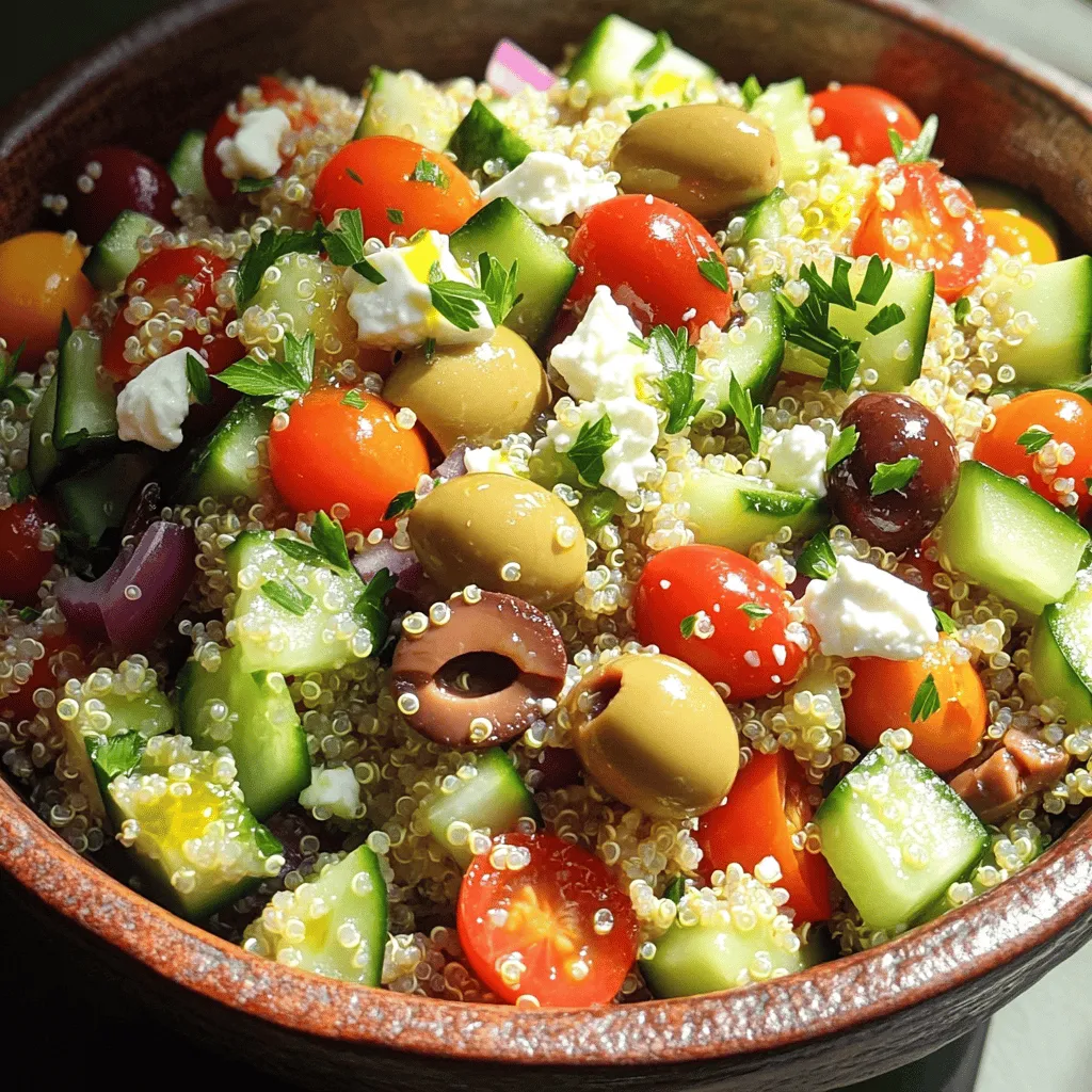 You can add protein to your Mediterranean quinoa bowl. Grilled chicken is a great choice. It adds flavor and makes the dish heartier. If you prefer a plant-based option, try chickpeas. They are rich in protein and fiber. You can roast them for a crunchy texture. Shrimp is also a tasty option. Just sauté it with some garlic and lemon for extra zest.