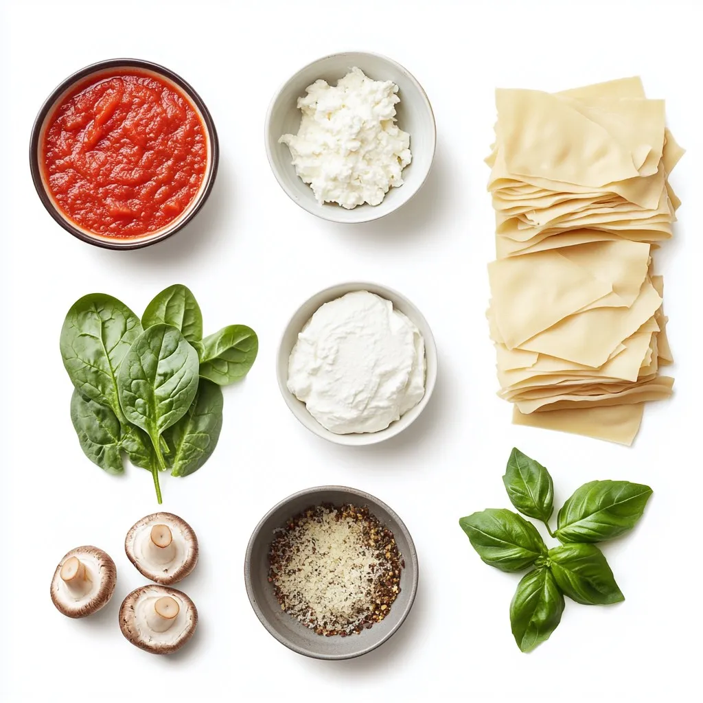 Gathering fresh ingredients makes a big difference. I love using vibrant spinach and earthy mushrooms. They add color and flavor to the dish. The ricotta cheese gives the filling a creamy texture. The mix of mozzarella and Parmesan adds a rich taste and nice melt.