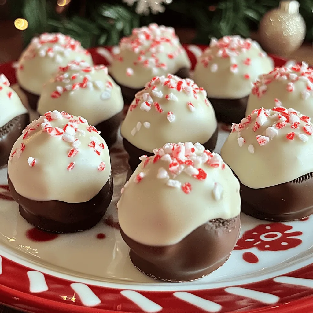 While the chocolate is still wet, sprinkle crushed peppermint candies on top. This adds a festive crunch and extra holiday cheer. Finally, return the truffles to the freezer for 10 to 15 minutes. This helps the chocolate set completely, making your truffles ready to enjoy!