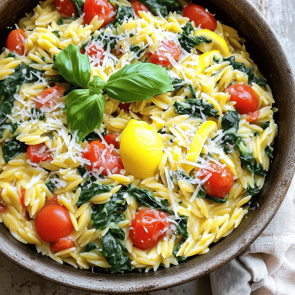 To make your orzo even more delicious, try these tips. Add a splash of white wine after cooking the garlic. This step brightens the dish with acidity. You can also mix in some red pepper flakes for a bit of heat. Fresh herbs can elevate the flavor too. Consider adding parsley or dill along with the basil. Lastly, squeeze in extra lemon juice before serving. This brightens up the dish and gives it a fresh taste.
