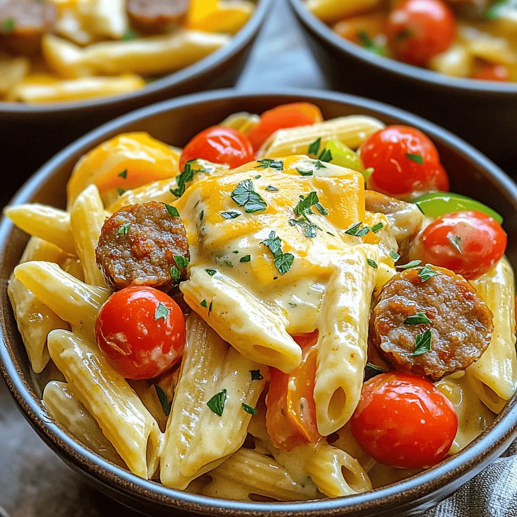For this dish, I recommend using smoked sausage for great flavor. Andouille sausage gives a nice kick, while turkey sausage is a leaner choice. Both options work well. For the pasta, I choose penne. Its hollow shape holds the sauce perfectly.