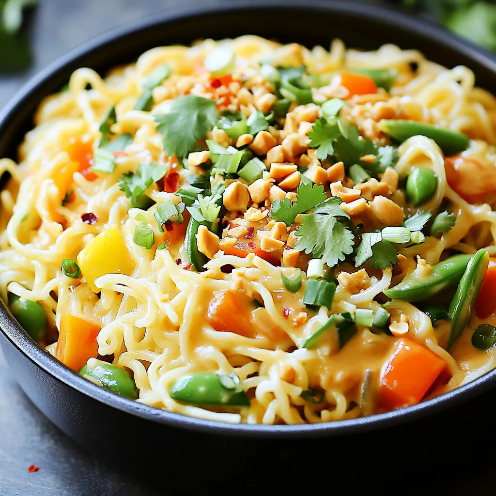 Detailed cooking process for One-Pot Creamy Thai Peanut Noodles