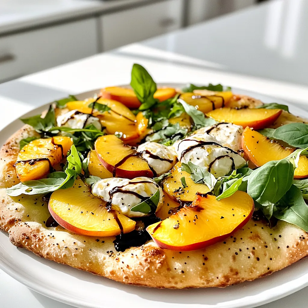 To make this tasty Peach Burrata Flatbread, you need a few key items: - 1 piece of store-bought or homemade flatbread - 2 ripe peaches, sliced into thin wedges - 8 oz burrata cheese, torn into pieces - 1 cup fresh arugula - 2 tablespoons honey - 1 tablespoon balsamic glaze - 2 tablespoons extra virgin olive oil - Salt and freshly cracked black pepper, to taste - Fresh basil leaves, for garnish These ingredients come together to create a delightful mix of flavors and textures. The peaches add sweetness, while burrata gives a creamy touch. Using high-quality ingredients makes a big difference. Choose ripe peaches for the best sweetness. Look for burrata that is fresh and creamy. The olive oil should be extra virgin for rich flavor. Fresh arugula adds a peppery bite, so buy it close to the use date. Quality ingredients make your flatbread sing! You can dress up your flatbread in fun ways. Here are some options: - Toasted pine nuts for crunch - A sprinkle of red pepper flakes for heat - Thinly sliced prosciutto for a savory touch - A drizzle of lemon juice for brightness Feel free to mix and match these garnishes. They can add extra flavor and fun to your meal! Start by preheating your oven to 400°F (200°C). This step helps the flatbread crisp up nicely. Take a piece of flatbread and place it on a baking sheet. Drizzle one tablespoon of extra virgin olive oil evenly over the flatbread's surface. This adds flavor and helps it brown. Bake for about 5-7 minutes. Look for a light brown color and crispy edges. This is when the flatbread is ready. While the flatbread bakes, it’s time to prepare the peaches. Slice two ripe peaches into thin wedges. Heat a skillet over medium heat. Add the peach slices to the skillet along with a drizzle of honey. Sauté the peaches for 3-4 minutes. Stir gently until they soften and get a warm, caramelized look. Remove the skillet from heat once done. The sweet smell will fill your kitchen. Now, take the baked flatbread out of the oven and let it cool for a minute. This makes it easier to handle. Tear the burrata cheese into bite-sized pieces. Evenly spread the cheese over the flatbread. Next, add the sautéed peaches on top. Follow this with a generous handful of fresh arugula. Drizzle balsamic glaze over everything for added flavor. Season with salt and freshly cracked black pepper to taste. Finish by garnishing with fresh basil leaves. Use a sharp knife or pizza cutter to slice the flatbread. Serve it warm and enjoy the mix of creamy burrata, sweet peaches, and peppery arugula. To get a crispy flatbread, start with a hot oven. Preheat it to 400°F (200°C). This heat helps the flatbread crisp up fast. Next, drizzle a tablespoon of olive oil on the flatbread. This adds flavor and helps it brown. Bake it for 5-7 minutes. Watch for a light brown color around the edges. That’s how you know it’s ready. If you want extra crunch, use a pizza stone. It holds heat well and cooks flatbread evenly. To boost the flavor of your Peach Burrata Flatbread, try using ripe peaches. The sweeter, the better! Sauté them with honey for a caramel touch. You can also add a sprinkle of fresh herbs, like thyme or mint. They add a fresh taste that pairs well with the peaches. For a savory kick, consider adding thin slices of prosciutto. It brings a nice saltiness to balance the sweetness. Lastly, don’t skip the balsamic glaze. It adds a rich, tangy finish that makes every bite pop. Burrata cheese is delicate, so handle it with care. Use your hands to tear it into pieces. This keeps the creamy inside intact. When placing it on the flatbread, do it gently. If it’s too cold, let it sit out for a few minutes. This brings out its creamy texture and flavor. Remember, burrata works best when it’s fresh. Use it right away for the best taste. If you have leftovers, store them in water to keep them fresh longer. {{image_4}} If you can't find flatbread, don't worry! You can use pita bread or naan instead. Both will give you a nice base. You can even try a gluten-free wrap if needed. Just remember to adjust the baking time. A thinner bread may bake faster. Peaches are sweet and juicy, but many fruits work well here. In summer, try ripe figs or nectarines. In fall, apples or pears can add a nice crunch. In winter, you can use roasted citrus for a fresh twist. Each fruit brings its own flavor to the flatbread. To make a vegan flatbread, swap the burrata for a dairy-free cheese. Cashew cheese or a store-bought vegan cream cheese works great. You can also try avocado slices for a creamy texture. Use maple syrup instead of honey to keep it plant-based. This way, everyone can enjoy this tasty dish! Store leftover Peach Burrata Flatbread in an airtight container. This keeps it fresh. Make sure to let it cool to room temperature before sealing. You can keep it in the fridge for up to three days. If you want to enjoy it later, wrap it tightly in plastic wrap. This will help it stay tasty. To reheat, preheat your oven to 350°F (175°C). Place the flatbread on a baking sheet. Heat for about 5-10 minutes. This will make it warm and crispy again. You can also use a toaster oven for this. If you want it quick, a microwave works too, but it may not stay crispy. You can freeze Peach Burrata Flatbread for longer storage. Wrap each piece in plastic wrap. Then place them in a freezer-safe bag. This will help to prevent freezer burn. When you are ready to eat, thaw in the fridge overnight. Reheat in the oven as mentioned above. Enjoy your flatbread just as delicious as when it was fresh! Yes, you can swap burrata for other cheeses. Try mozzarella or ricotta for a similar taste. These cheeses will still give you that creamy texture. If you want a stronger flavor, goat cheese also works well. Each option will change the dish a bit, but they will all taste great. You can mix and match toppings to suit your taste. Here are some ideas: - Prosciutto for a salty kick - Feta cheese for a tangy flavor - Grilled veg