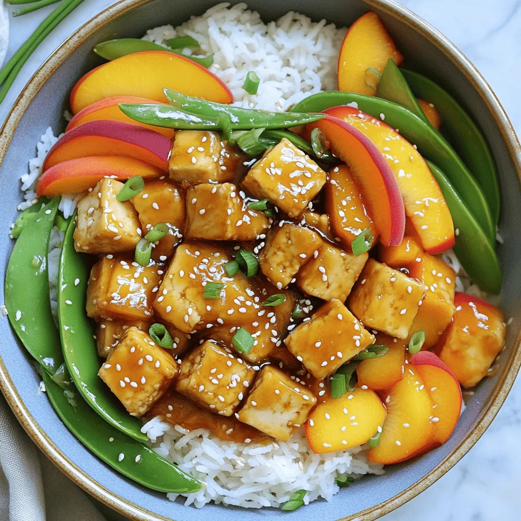Gathering the right ingredients is key for this Peach Glazed Tofu Stir Fry. Start with firm tofu for the best texture. Ripe peaches add a sweet touch. Choose a bell pepper for color and crunch. Snap peas bring a fresh bite. Finally, green onions add a nice pop of flavor.