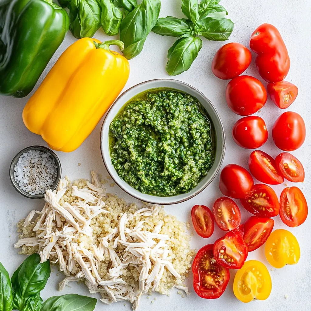 Looking for a dish that’s both festive and packed with flavor? Try my Pesto Chicken Stuffed Peppers! This tasty meal not only looks great but also bursts with fresh ingredients. It combines tender chicken, rich pesto, and gooey cheese, all stuffed inside vibrant bell peppers. Easy to prepare and perfect for any gathering, this recipe will make your taste buds dance. Let’s dive into the ingredients and get cooking!