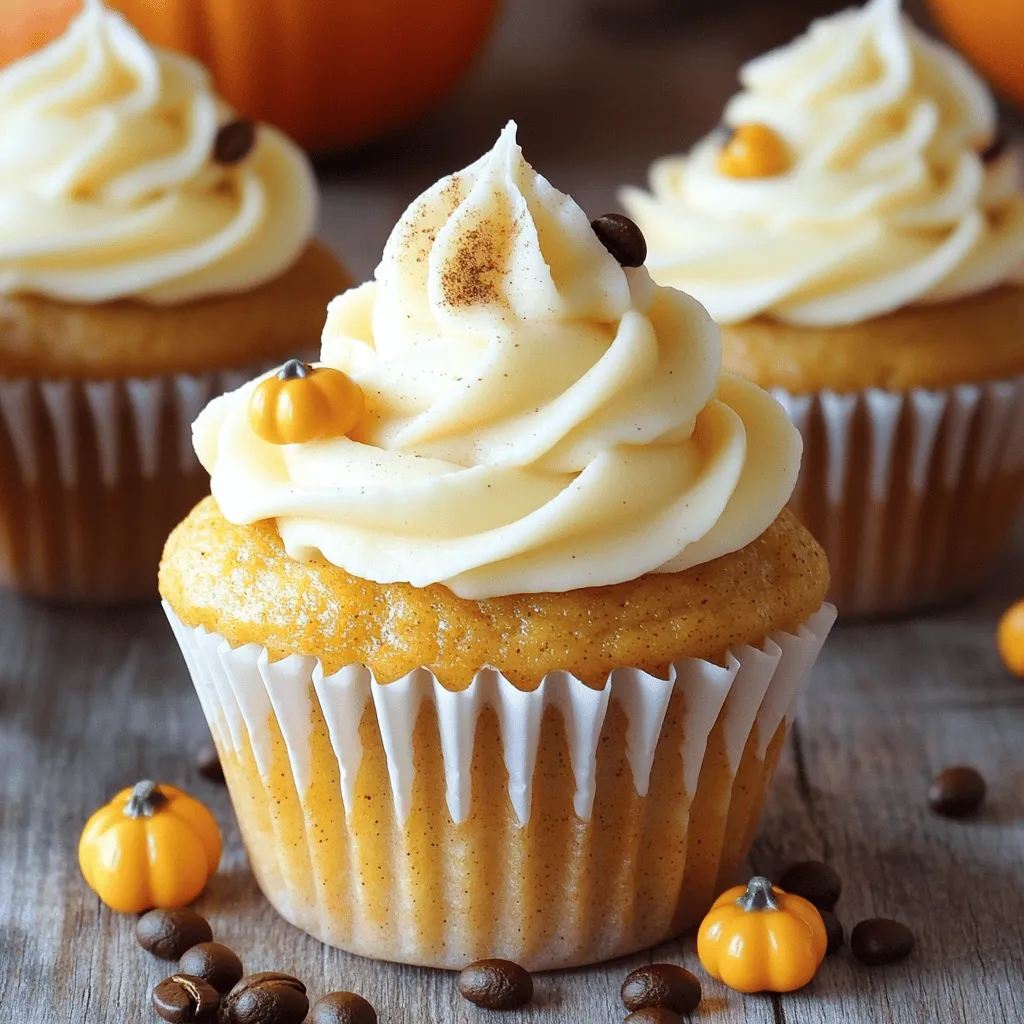 To make delicious pumpkin spice latte cupcakes, gather these simple ingredients: - 1 ½ cups all-purpose flour - 1 teaspoon baking powder - ½ teaspoon baking soda - 1 teaspoon ground cinnamon - ½ teaspoon ground nutmeg - ½ teaspoon ground ginger - ¼ teaspoon salt - ½ cup unsalted butter, softened to room temperature - 1 cup granulated sugar - 2 large eggs, at room temperature - 1 cup pumpkin puree (canned or freshly made) - ½ cup brewed coffee, cooled to room temperature - 1 teaspoon vanilla extract Each ingredient plays a key role. The flour gives structure. Baking powder and baking soda make the cupcakes rise. The spices add warmth and flavor. Butter and sugar create a soft texture. Eggs help bind everything together. Pumpkin puree brings moisture and that signature taste. Coffee enhances the flavor and adds depth. Finally, vanilla makes it all sing. For the full recipe, follow the detailed instructions to create these irresistible treats. Happy baking! - Preheat your oven to 350°F (175°C). - Prepare a muffin tin with cupcake liners. - In a bowl, combine 1 ½ cups all-purpose flour, 1 teaspoon baking powder, ½ teaspoon baking soda, 1 teaspoon ground cinnamon, ½ teaspoon ground nutmeg, ½ teaspoon ground ginger, and ¼ teaspoon salt. - In a large bowl, cream ½ cup softened butter and 1 cup granulated sugar until light and fluffy. - Add 2 large eggs one at a time, mixing well after each. Then, mix in 1 cup pumpkin puree and ½ cup cooled brewed coffee. - Gradually mix the dry ingredients into the wet ingredients. Stir gently until just combined to avoid overmixing. - Fill each cupcake liner about two-thirds full with batter. - Bake in the preheated oven for 18-20 minutes. Check doneness by inserting a toothpick into the center of a cupcake; it should come out clean. Now you have a delicious batch of pumpkin spice latte cupcakes. For the complete recipe and more tips, check out the full recipe above! To get the best cupcakes, avoid overmixing. When you combine the wet and dry ingredients, mix gently. Stop as soon as you see no dry flour. Overmixing makes the cupcakes tough. Using room temperature ingredients is key. When butter, eggs, and pumpkin are at room temp, they blend better. This creates a smooth batter and light cupcakes. If your butter is cold, it won't cream well with sugar. For a tasty frosting, I love cream cheese frosting. It pairs perfectly with the spices in the cupcakes. To make it, mix 8 oz of cream cheese, ½ cup of softened butter, 4 cups of powdered sugar, and a splash of vanilla extract. If you're looking for alternatives, whipped cream works great too. You can also try a rich chocolate ganache. Just melt chocolate with cream for a sweet, gooey topping. Add a festive touch to your cupcakes. You can sprinkle cinnamon or nutmeg on top. A drizzle of caramel sauce makes them extra special. For a flavor boost, think about toppings. Try crushed nuts or mini chocolate chips. You can even place a coffee bean or a candy pumpkin on top for fun. These little details make your cupcakes shine! {{image_4}} You can mix things up with flavor combinations. Adding chocolate chips gives a sweet touch. Chopped nuts like walnuts or pecans add crunch and flavor. For a twist, try spices like cardamom or allspice instead of cinnamon. Each change can turn the same cupcake into a new treat. If you need gluten-free cupcakes, use almond flour or a gluten-free blend. For vegan options, swap eggs with applesauce or flaxseed meal. You can also use coconut oil instead of butter. When it comes to sugar, use honey or maple syrup for a healthier choice. These swaps keep the taste great! You can play with seasonal flavors too! In winter, add peppermint extract for a minty kick. For fall, use maple syrup in place of some sugar. These ideas make your cupcakes match any holiday theme. Each season brings a new way to enjoy pumpkin spice latte cupcakes. For the full recipe, check back to make these delightful treats! To keep your pumpkin spice latte cupcakes fresh, follow these simple steps. First, let them cool completely. This helps avoid soggy cupcakes. Store them in an airtight container. You can place parchment paper between layers to keep them from sticking together. If you want to store them in the fridge, wrap each cupcake tightly in plastic wrap. This method helps maintain moisture and flavor. They can last up to five days in the fridge. For longer storage, freeze your cupcakes. Place them in a freezer-safe container or bag. They can stay fresh in the freezer for up to three months. Just remember to label them with the date. If your cupcakes feel a bit stale, don’t worry! You can refresh them easily. To do this, preheat your oven to 350°F (175°C). Place the cupcakes on a baking sheet for about five minutes. This warms them up and brings back some moisture. If you’ve frozen your cupcakes, thaw them slowly. The best way is to move them from the freezer to the fridge for a few hours or overnight. This method helps keep the texture nice. Once thawed, you can frost them and enjoy! For the full recipe of these delightful treats, refer to the earlier section. You can prepare the batter a day in advance. Just store it in the fridge. When you are ready to bake, let it sit at room temperature for about 30 minutes. This helps the batter warm up. You can also bake the cupcakes ahead of time. Once cooled, place them in an airtight container. They last for up to three days at room temperature. For longer storage, keep them in the fridge for up to a week. Yes, fresh pumpkin makes a great choice! It can add a richer flavor. To use fresh pumpkin, start by cutting a small pumpkin in half. Remove the seeds and stringy bits. Roast the halves cut-side down at 350°F (175°C) for about 45 minutes. Once it’s soft, scoop out the flesh and mash it well. Measure out one cup for your cupcakes. Fresh pumpkin can give your treats a vibrant taste. If you need an egg substitute, you have options. For each egg,