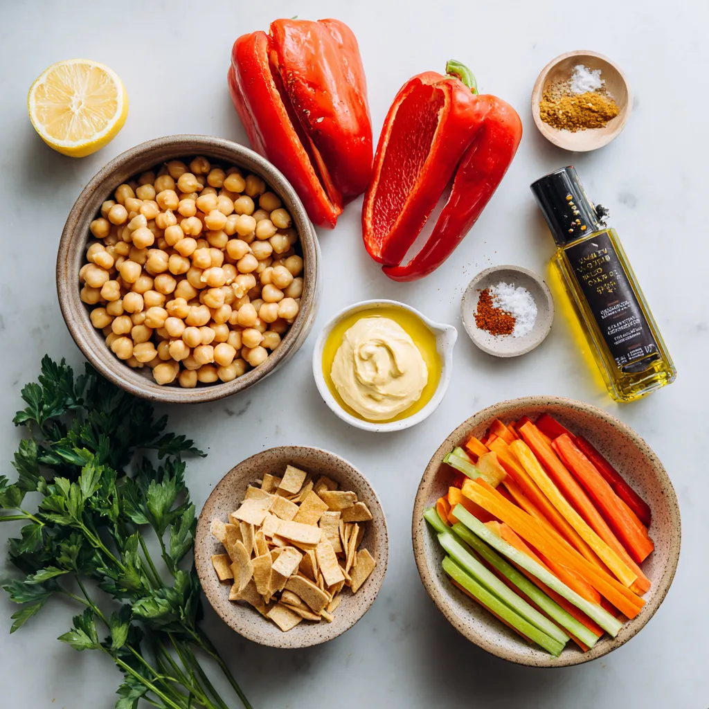 To make roasted red pepper hummus, gather these fresh and flavorful ingredients: