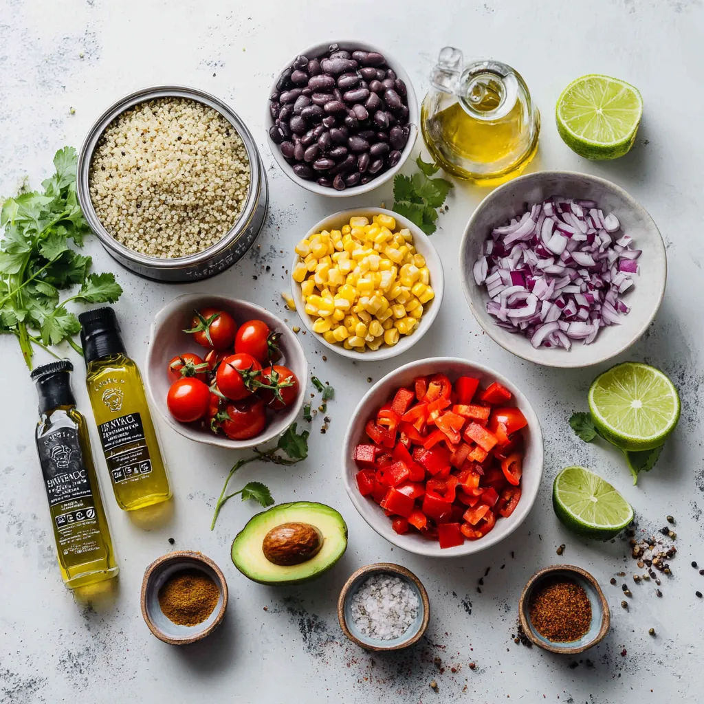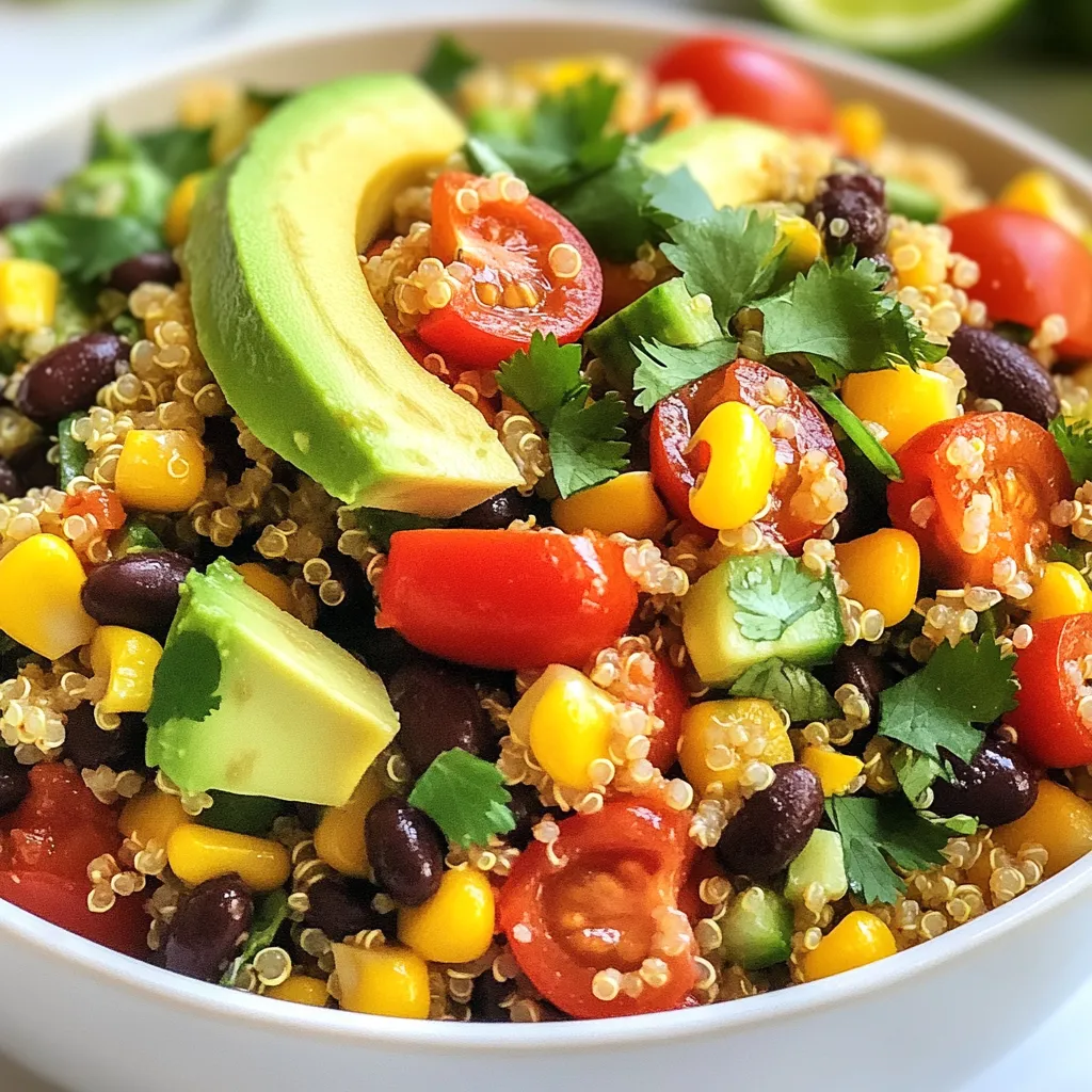 A vibrant and nutritious salad featuring quinoa, black beans, and fresh vegetables, dressed with a zesty lime vinaigrette.