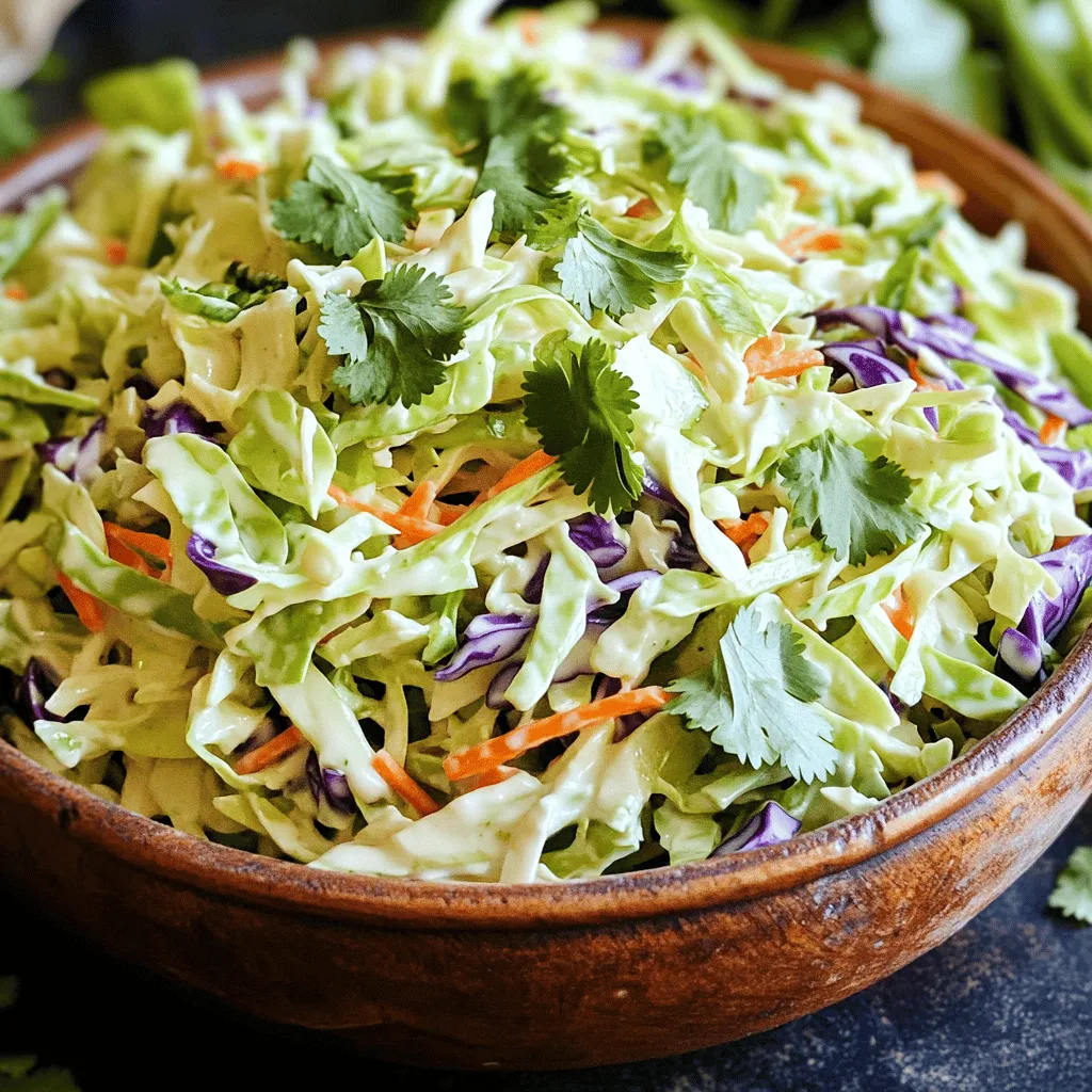 Serve your coleslaw in a bright bowl to make it pop. A clear glass bowl shows off the colorful veggies. For a final touch, garnish with extra cilantro leaves. This adds a fresh look and extra flavor.