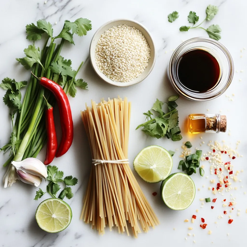Chopped green onions are a must for freshness and crunch. I sprinkle sesame seeds on top for texture and a bit of nutty taste. To finish, fresh cilantro leaves add color and brightness. Lime wedges bring a zesty touch when you squeeze them over the noodles.