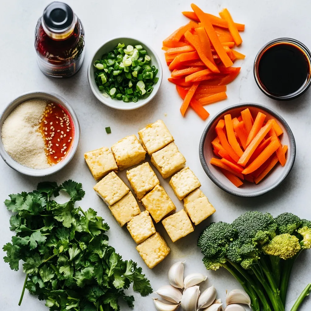The star of this dish is firm tofu. It soaks up all the flavors. Pressing the tofu removes extra moisture. This makes it crispy when cooked. The fresh vegetables add color and crunch. I love using red bell pepper, broccoli, and carrot. Each one gives the dish unique tastes and textures.