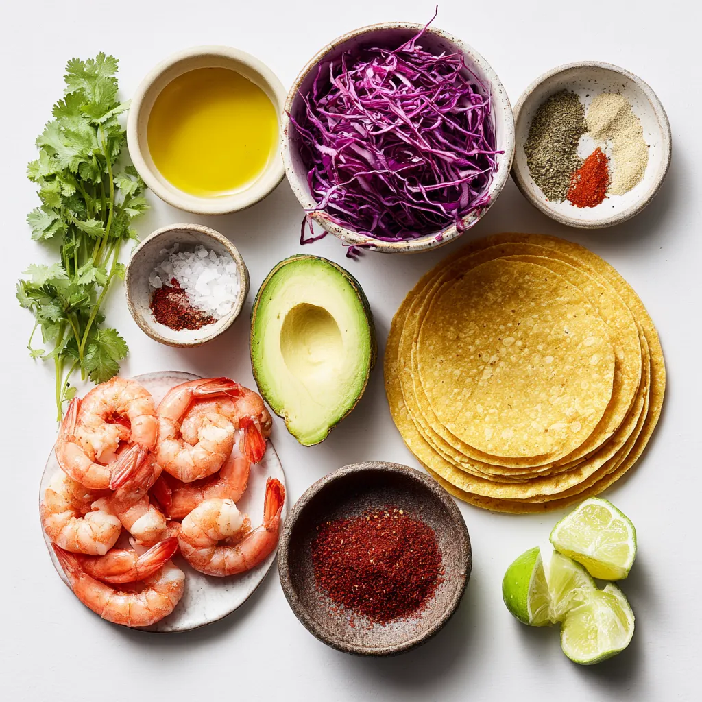 Gathering the right ingredients is key to making tasty spicy shrimp tacos. Start with fresh shrimp for the best flavor. I like to use peeled and deveined shrimp to save time. Next, grab some extra-virgin olive oil, chili powder, and ground cumin. These spices give the shrimp a great kick.