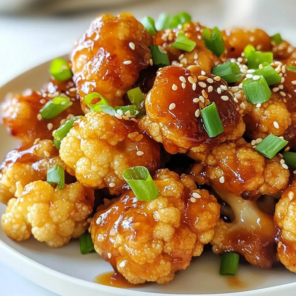 The cornstarch mixed with water is crucial for thickening the sauce. It ensures your glaze sticks well to the cauliflower. For garnishes, green onions and sesame seeds add both color and crunch. Finally, season with salt and pepper to taste. These ingredients come together to create a dish that is not only tasty but also visually appealing.