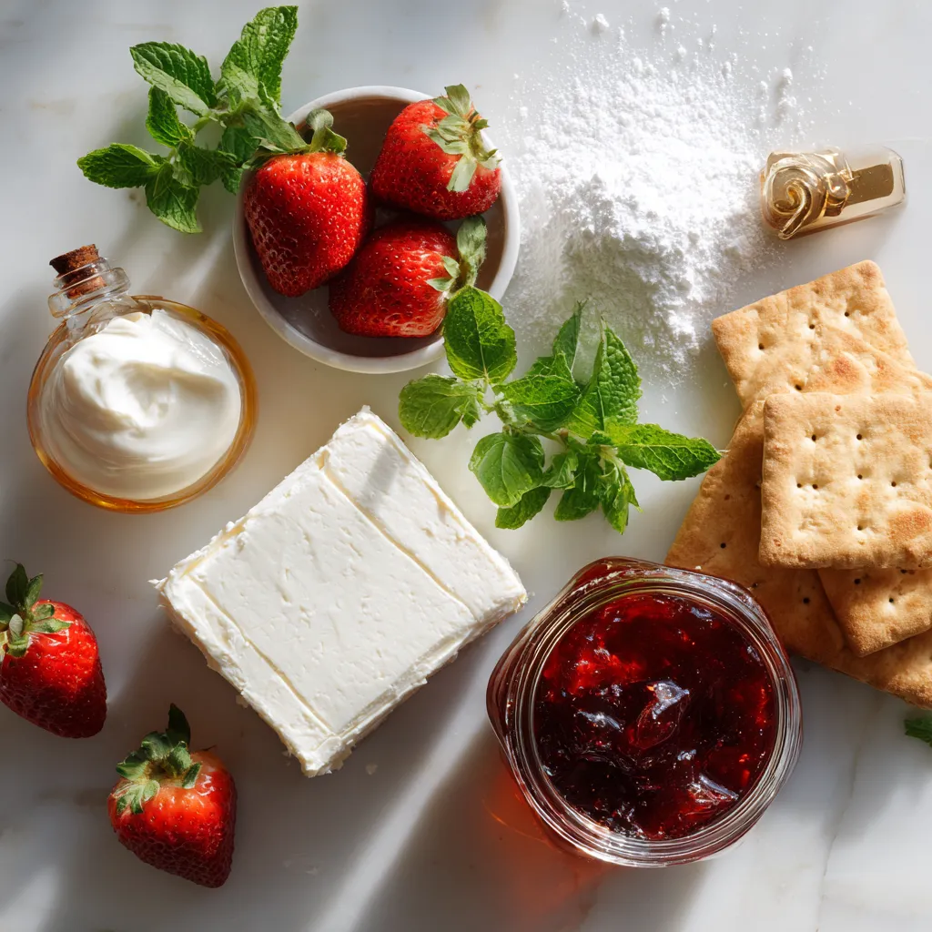 To create this strawberry cheesecake dip, you need a few simple ingredients. First, the cream cheese gives the dip its rich base. Make sure it is soft. This helps it mix well. Next, powdered sugar adds sweetness. You can sift it to avoid lumps.