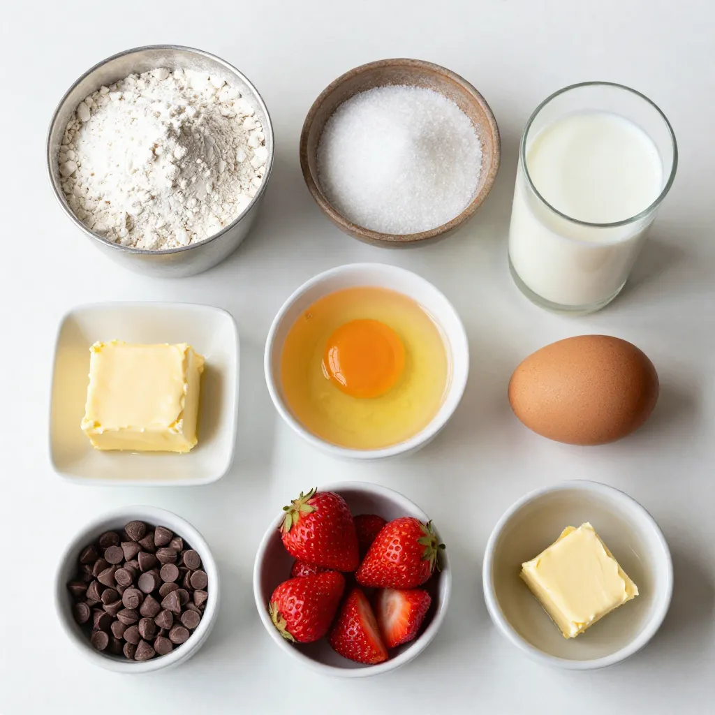 Finally, you will need extra butter or oil for cooking. This will help keep your pancakes from sticking to the pan. With all these ingredients ready, youβre set to make some delicious strawberry chocolate chip pancakes!