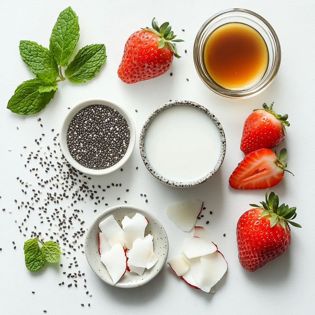 A delightful and refreshing dessert made with chia seeds, coconut milk, and fresh strawberries.
