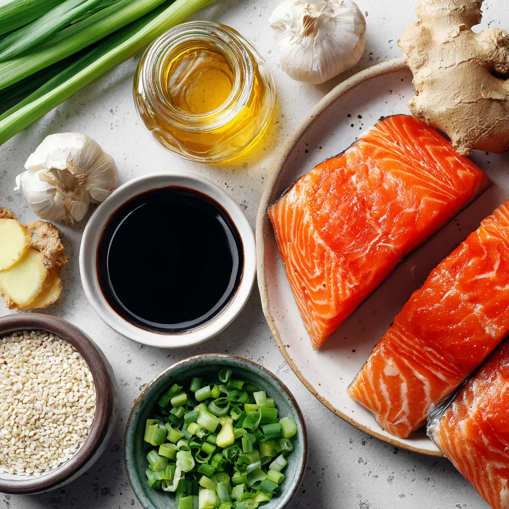 To start, gather your ingredients. You need fresh salmon fillets, soy sauce, honey, sesame oil, garlic, ginger, rice vinegar, and some seasoning. In a medium bowl, whisk the soy sauce, honey, sesame oil, minced garlic, grated ginger, and rice vinegar until smooth. This mix is your marinade.