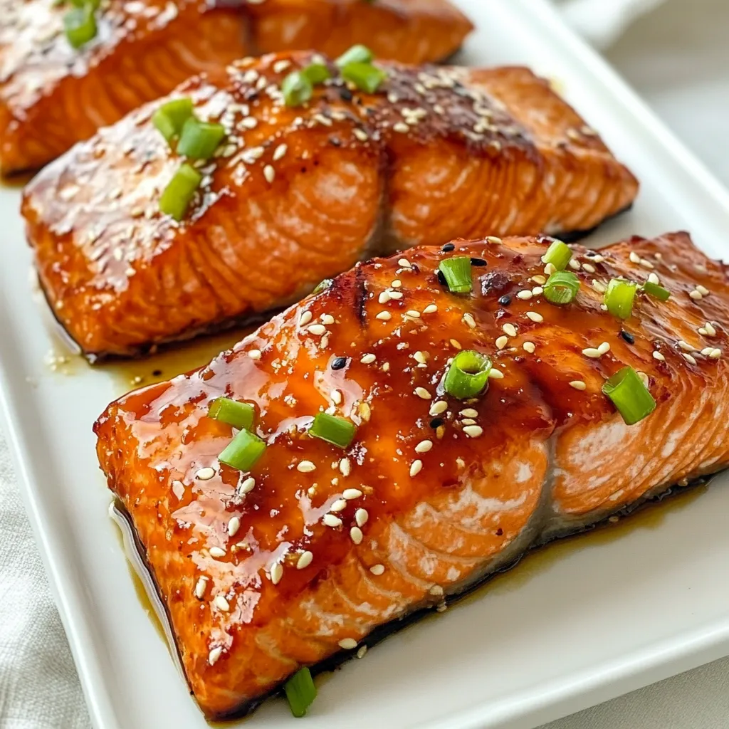 - 4 fresh salmon fillets (6 ounces each) - 1/4 cup low-sodium soy sauce - 1/4 cup honey - 2 tablespoons sesame oil - 2 cloves garlic, finely minced - 1 teaspoon fresh ginger, finely grated - 1 tablespoon rice vinegar - 1 tablespoon green onions, finely chopped (for garnish) - 1 teaspoon sesame seeds (for garnish) - Salt and pepper, to taste You can swap low-sodium soy sauce with regular soy sauce for a stronger taste. If you want a sweeter glaze, use maple syrup instead of honey. For a nutty flavor, try using peanut oil instead of sesame oil. If you don’t have fresh ginger, ground ginger works too, just use less. - Medium mixing bowl - Whisk - Shallow dish or resealable plastic bag - Baking sheet - Parchment paper or cooking spray - Small saucepan - Fork for testing doneness - Measuring cups and spoons - Knife and cutting board {{ingredient_image_2}} To start, gather your ingredients. You need fresh salmon fillets, soy sauce, honey, sesame oil, garlic, ginger, rice vinegar, and some seasoning. In a medium bowl, whisk the soy sauce, honey, sesame oil, minced garlic, grated ginger, and rice vinegar until smooth. This mix is your marinade. Next, place the salmon fillets in a shallow dish or a resealable bag. Pour the marinade over the fillets. Make sure to cover all the fish well. Cover the dish or seal the bag and put it in the fridge. Let it marinate for at least 30 minutes, but 2 hours gives even better flavor. Marinating is key for flavor. The soy sauce adds saltiness, while honey brings sweetness. Garlic and ginger provide depth. The rice vinegar balances it all out. When you let the salmon soak, it absorbs these great tastes. You can use a plastic bag for easy mixing, too. Just turn it around a few times to coat every piece. When you’re ready to cook, preheat your oven to 400°F (200°C). Line a baking sheet with parchment paper or grease it lightly. Take the salmon out of the marinade and let any extra drip off. Place the fillets skin-side down on the baking sheet. Lightly sprinkle salt and pepper on top for extra flavor. Bake the salmon for 12 to 15 minutes. It should flake easily when you test it with a fork. While it bakes, pour the leftover marinade into a small pot. Heat it over medium until it simmers and thickens for about 5 to 7 minutes. Once the salmon is done, drizzle the thickened glaze over each piece. This gives your dish a shiny finish! To cook salmon well, focus on time and temperature. Bake it at 400°F (200°C) for 12 to 15 minutes. The salmon should flake easily with a fork when done. Use a meat thermometer to check the internal temperature. It should reach 145°F (63°C). Let it rest for a few minutes before serving to keep it juicy. Don’t skip marinating the salmon. It adds great flavor and moisture. Avoid cooking it too long, or it will dry out. Always use a parchment-lined baking sheet for easy cleanup. Also, don’t forget to season with salt and pepper before baking. These seasonings enhance the dish's taste. Serve your Sweet Soy Glazed Salmon on a clean white plate. Pair it with steamed vegetables for color and nutrition. A side of fluffy rice also complements the flavors. Drizzle extra marinade over the salmon for more taste. Garnish with green onions and sesame seeds for a beautiful touch. Enjoy the meal with family or friends! Pro Tips Marinate for Maximum Flavor: Allow the salmon to marinate for at least 1 hour, or up to 2 hours, to deepen the flavor profile and enhance the sweetness of the glaze. Use Fresh Ingredients: Opt for fresh garlic and ginger rather than powdered versions. Fresh ingredients provide a more vibrant flavor and aromatic quality to the dish. Check for Doneness: To ensure perfectly cooked salmon, check for doneness using a fork; it should flake easily. Avoid overcooking to maintain a moist texture. Elevate the Presentation: Serve the salmon on a bed of steamed rice or sautéed greens, and drizzle with the thickened glaze for a restaurant-quality look that’s visually appealing. {{image_4}} You can switch things up with different marinades. Try a teriyaki sauce for a stronger flavor. You could also mix maple syrup with soy sauce for a sweet twist. A citrus marinade with orange juice and lime adds a fresh taste. Each variation gives your dish a new kick. To make this dish fit your needs, swap the soy sauce for tamari if you’re gluten-free. Use agave syrup instead of honey for a vegan option. If you want less fat, you can skip sesame oil. Just add a little olive oil for flavor. Each swap still keeps your salmon tasty and healthy. You can grill or bake your salmon. Grilling gives it a smoky flavor. It’s perfect for warm days. Just preheat your grill to medium heat. Cook the fillets skin-side down for about 6 to 8 minutes. Baking is easy too. It keeps the salmon moist. Just follow the baking steps from the recipe. Both methods work well. Choose what suits your style! After enjoying your sweet soy glazed salmon, you may have leftovers. To store them, let the salmon cool down first. Once cool, place the fillets into an airtight container. Make sure to cover it well. This keeps the salmon fresh and tasty. Store it in the fridge for up to three days. If you want to keep it longer, consider freezing. When you're ready to eat your leftover salmon, reheating is key. For best results, use the oven. Preheat it to 300°F (150°C). Place the salmon on a baking sheet covered with foil. Heat it gently for about 10 minutes. This method helps keep the fish moist and flavorful. You can also use a microwave. Just cover the salmon with a damp paper towel and heat for about 30 seconds. Check if it's warm enough, and repeat if needed. If you want to freeze your salmon, it's easy. Wrap each fillet tightly in plastic wrap. Then place them in a freezer-safe bag or container. Make sure to remove as much air as possible. Label the bag with the date. Frozen salmon is best used within three months for the best taste. When ready to eat, thaw it overnight in