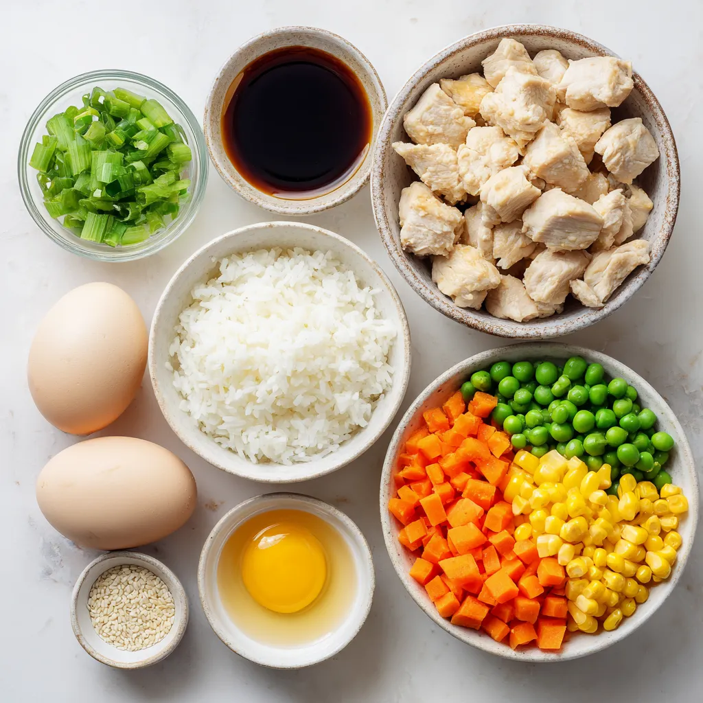 To make a tasty Teriyaki Chicken Fried Rice, gather these simple ingredients: