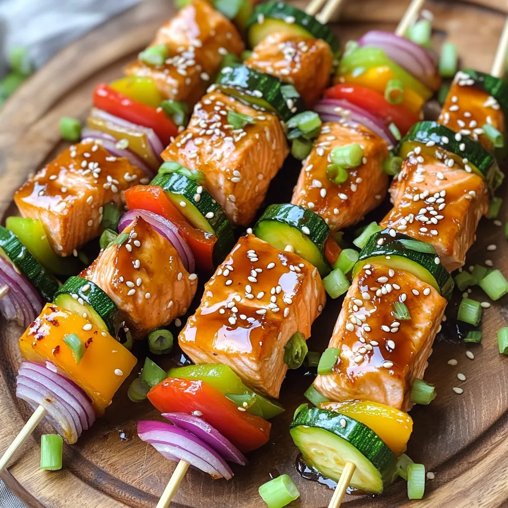 Elevate your dinner game with these delicious Teriyaki Glazed Salmon Skewers! Perfect for a quick meal or a barbecue party, these skewers are not only easy to make but also packed with flavor. Marinated in a homemade teriyaki sauce, they feature tender salmon alongside vibrant veggies. Ready in just 40 minutes, these skewers are a crowd-pleaser. Click through for the full recipe and make your next meal unforgettable! #TeriyakiGlazedSalmon #HealthyRecipes #Grilling #SeafoodLovers