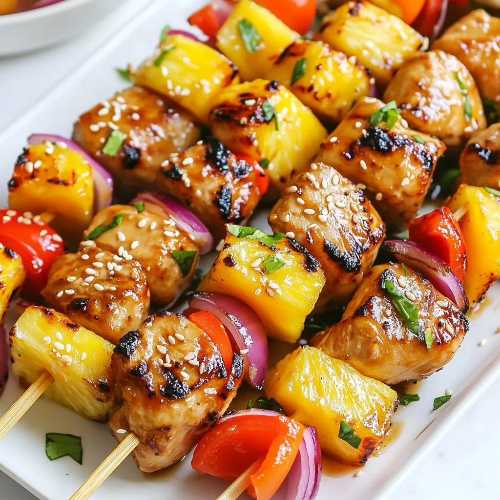Delicious skewers of chicken, pineapple, and vegetables marinated in a savory teriyaki sauce.