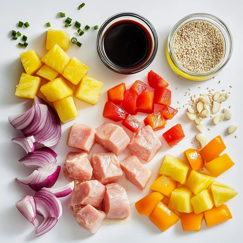 The main ingredients create a great balance of flavors and textures. The chicken provides protein, while the pineapple adds sweetness. The bell pepper and red onion contribute crunch and color.