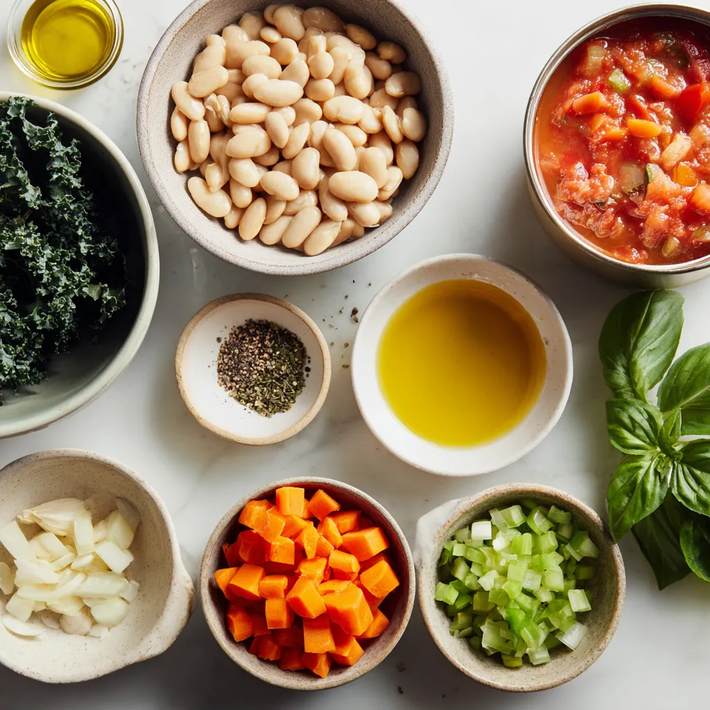 When making Tuscan White Bean Kale Stew, gathering the right ingredients is key. The dried white beans make the base creamy and hearty. Choose cannellini or great northern beans for the best flavor. Soak them overnight for the best results.