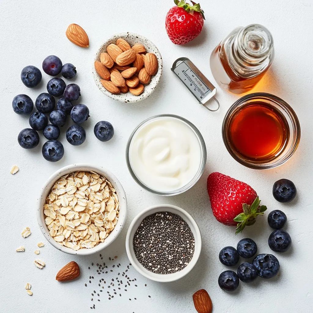 First, gather your ingredients. You will need rolled oats, almond milk, Greek yogurt, chia seeds, maple syrup, and flavor extracts. In a medium mixing bowl, add 1 cup of rolled oats. Pour in 1 cup of almond milk. If you want creaminess, add 1/2 cup of Greek yogurt. Then, mix in 2 tablespoons of chia seeds, 1 tablespoon of maple syrup, 1 teaspoon of pure vanilla extract, and 1/4 teaspoon of almond extract. Don’t forget a pinch of salt for flavor. Use a whisk or spoon to mix everything well. Make sure the oats are fully soaked in the liquid.