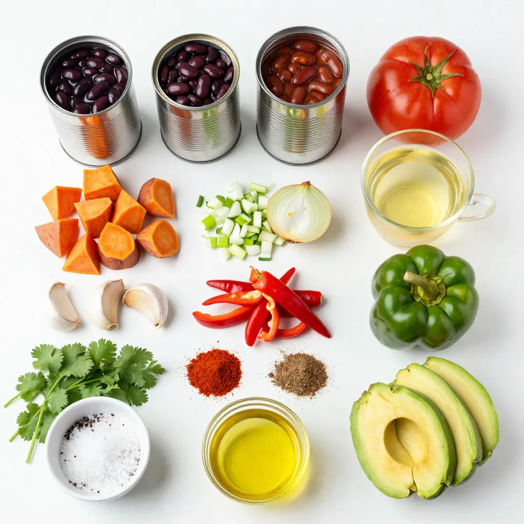 A delicious and filling chili made with sweet potatoes, beans, and spices, perfect for a comforting meal.