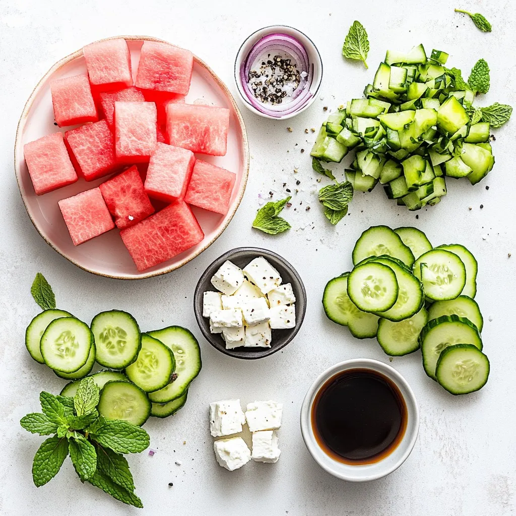 Start with a ripe watermelon. Cut it into 1-inch cubes. You can use a sharp knife for this. Place the cubes in a large mixing bowl. The watermelon is the star of this dish. Its sweet, juicy flavor shines through in every bite.