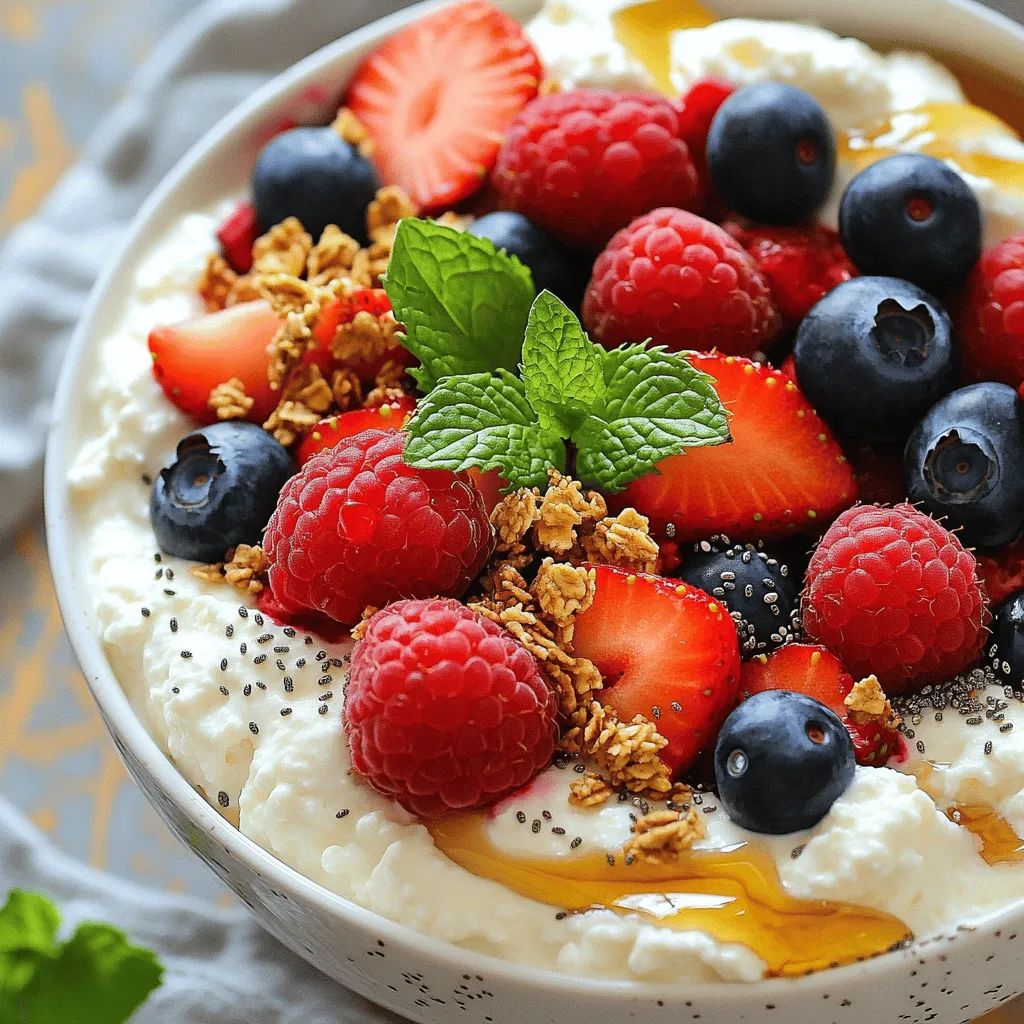 Cottage cheese is the star here. It has protein and creaminess. You can choose honey or maple syrup to add sweetness. The mixed berries bring color and flavor. I like to use strawberries, blueberries, and raspberries for a mix.